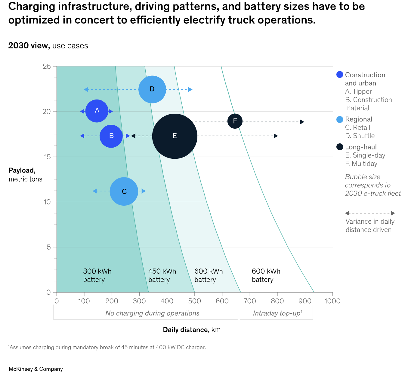 Charging infrastructure has become a crucial aspect of electric trucking. Companies are vying to provide comprehensive solutions, but significant challenges related to vehicles, charging networks, and the electric grid still need to be addressed at scale. According to McKinsey, expanding electric trucks will necessitate a robust charging network in Europe, where an estimated 300,000 public and private charge points will be needed by 2030, compared to just 10,000 today.