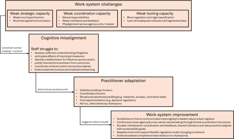 The authors argue that these informal adaptations point to what better-designed work systems should look like: durable coordination structures across agencies and municipalities, shared indicators aligned with real sustainability outcomes, flexible regulatory tools such as geofencing, and institutionalized logistics competence that does not rely on a handful of enthusiastic individuals.