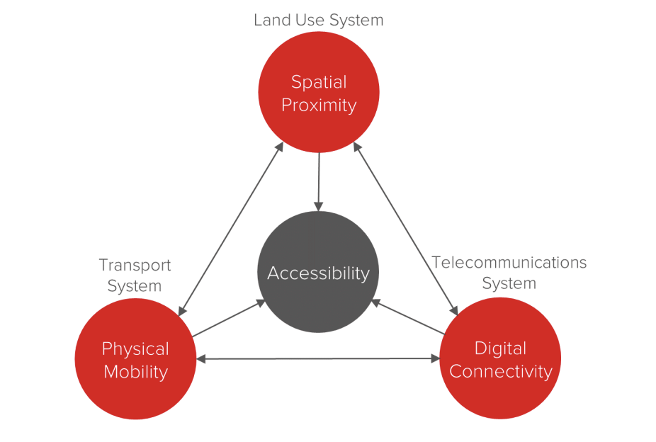 The core idea is that access (the ability of people and goods to reach destinations and opportunities) isn’t just about physical movement. It’s the combination of three things: physical mobility (can you get there?), spatial proximity (is it close enough?), and digital connectivity (can you reach it without moving at all?). Planning that treats these three in isolation produces fragile systems. Integrating them produces resilient ones.